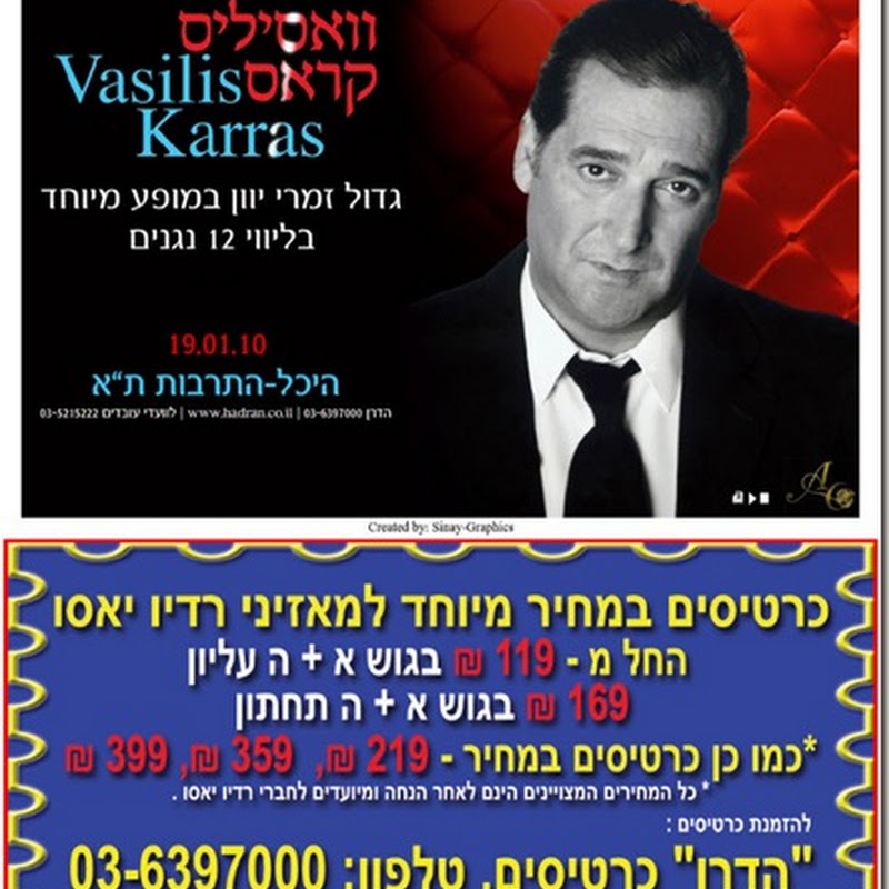 ואסיליס קאראס מגיע לישראל - מחיר מיוחד לחברי רדיו יאסו